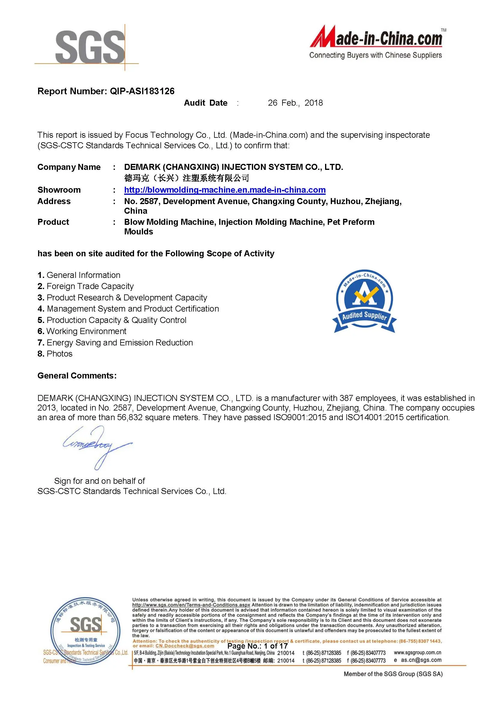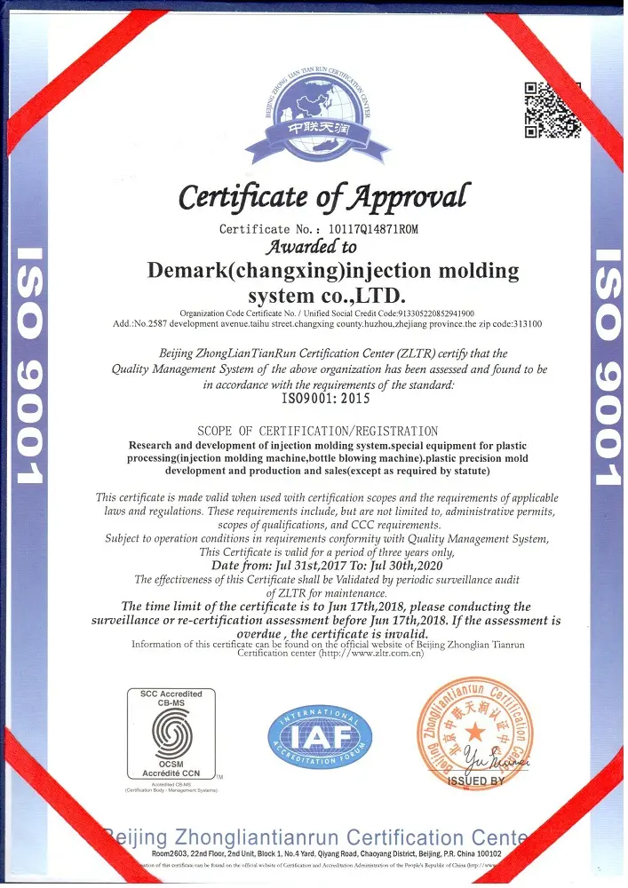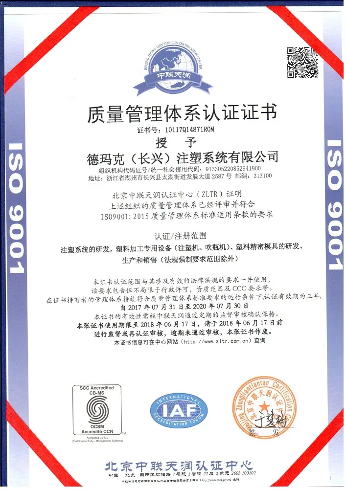 Demarkは、プラスチック包装業界におけるスマートファクトリーソリューションの大手サプライヤーです。 Demarkは浙江省湖州市長興にあります。 それは200,000平方メートルの面積をカバーしています。 それは1億1500万ドルの固定資産を持っています。 Demarkは4つの子会社を持ち、上海に販売および研究開発拠点を設立しています。 製品は100カ国以上に輸出されています。 サービスには、PET液体包装、プラントの設計と計画を含むワンステップサービス、統合された生産ラインの統合、エンジニアリングの設置と試運転、人員操作のトレーニング、およびライン全体のアフターサービスが含まれます。 主にダイレクトクランプPETプリフォーム射出成形機、高速ロータリーPETブロー成形機、ブロー充填機、バルブゲートホットランナーシステムPETプリフォーム金型などを製造しています。